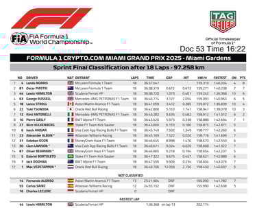 Grand Prix de Miami – Sprint : Albon, Lawson et Bearman pénalisés