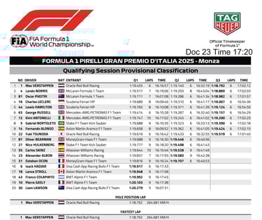 Grand Prix d’Italie - Qualifications : Max Verstappen en pole devant les McLaren