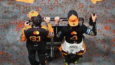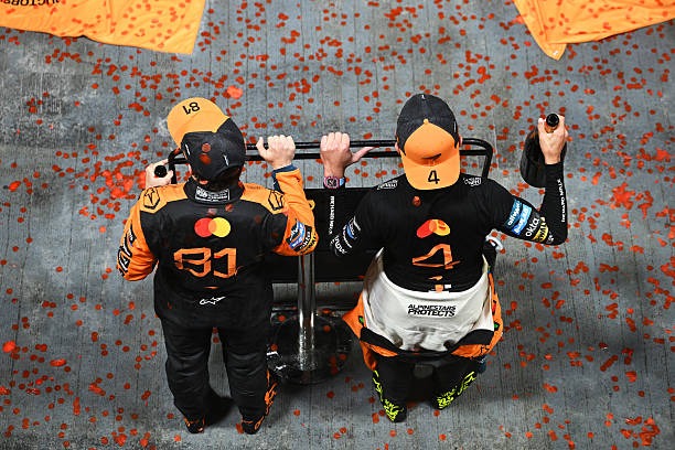 Dans la nuit de Singapour, McLaren a conclu le travail. Dominatrice depuis le début de la saison, l’écurie de Woking a remporté son dixième titre des constructeurs. Après la cérémonie du podium, Lando Norris est rejoint sur la boîte par son équipe. Zak Brown, Andrea Stella et le reste de l’équipe festoient sur le podium. Pendant ce temps, Oscar Piastri observe les siens depuis le carré des interviews, avant de rejoindre les festivités quelques minutes plus tard.