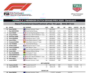 Auteur de la pole position, Oscar Piastri avait pour objectif d’augmenter son avance au championnat face à son coéquipier Lando Norris... Il ne s’attendait sûrement pas à repartir de Zandvoort avec 34 points d’avance.